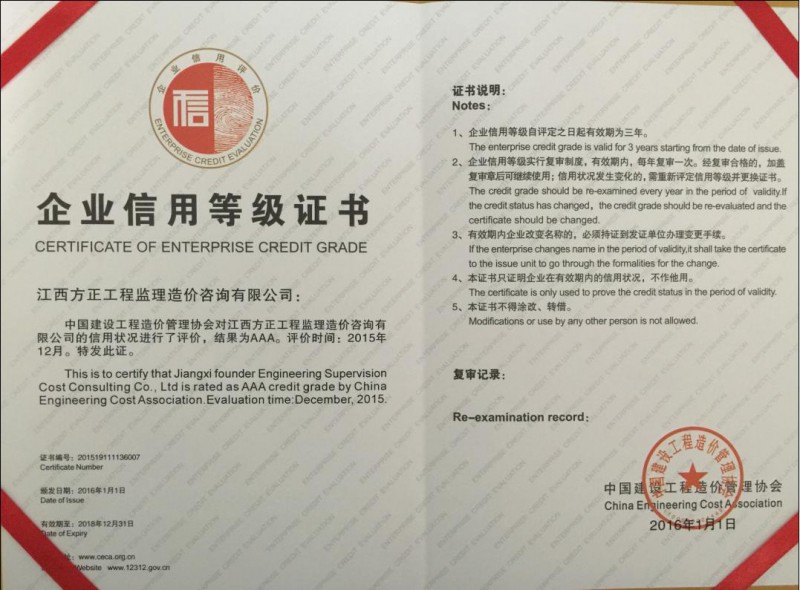 江西方正工程監(jiān)理造價(jià)咨詢有限公司于二OO三年五月在南昌市工商行政管理局注冊(cè)(注冊(cè)號(hào):360100210024211),成立的有限責(zé)任公司,先后取得建設(shè)部及江西省建設(shè)廳頒發(fā)的建設(shè)施工工程造價(jià)咨詢企業(yè)資質(zhì)、招投標(biāo)代理機(jī)構(gòu)資質(zhì)、工程監(jiān)理資質(zhì)及江西省財(cái)政廳頒發(fā)的采購(gòu)代理資質(zhì),是專門從事工業(yè)與民用建筑工程造價(jià)咨詢、工程建設(shè)招投標(biāo)代理、工程監(jiān)理及采購(gòu)代理的公司。